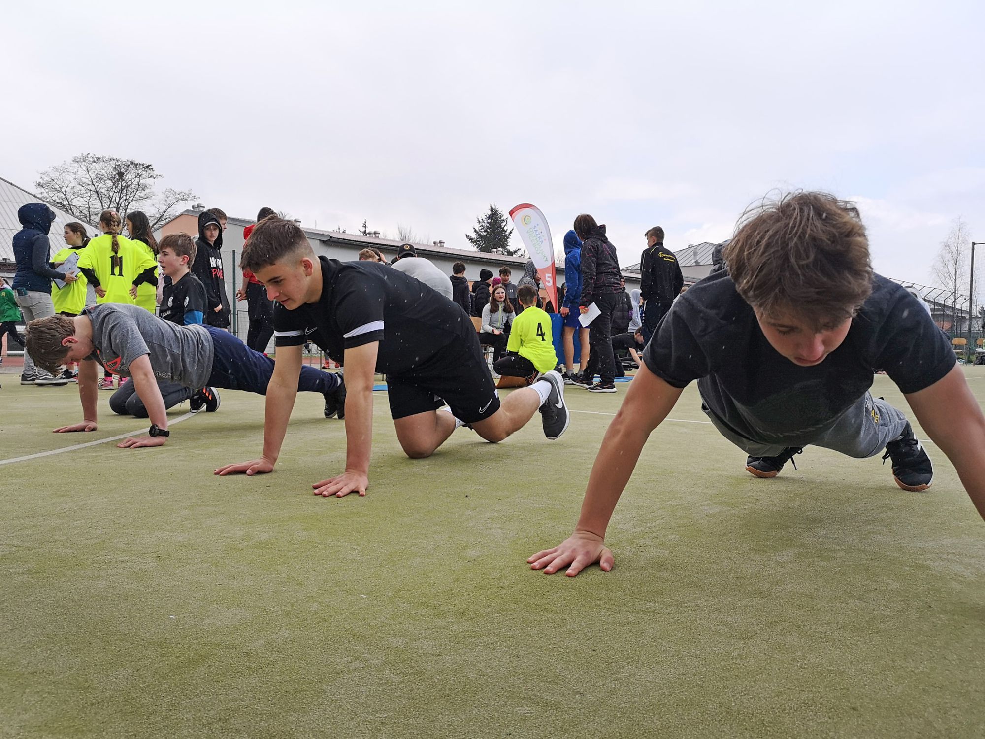 Jako první se jim do cesty postavil skok daleký. Po prvních skocích naši závodníci vypadali spíše jako sněhuláci než atleti. To je však nezlomilo a podařil se položit slušný bodový základ. Na druhou a třetí disciplínu se stěhovali do tělocvičny, kde na ně čekaly dvě silové disciplíny: shyby na dvě minuty a leh-sedy na dvě minuty. Zde bohužel ztratili, hlavně ve shybech na nakloněné lavičce, které nemají ve škole možnost trénovat. Po absolvování silovek mohli opět vyrazit ven za deštěm, kde je přivítal hod míčkem. K velkému překvapení se i zde někteří závodníci prali s nervozitou a technikou. A místo toho, aby míčkem rozháněli mraky, raději proháněli krtky. I tak se díky solidním hodům dostali zpět do hry. Předposlední disciplínou byl běh na 60 metrů, kde po doběhu někteří závodníci ještě vysypávali zbytky písku z trenýrek. Jak se říká „na závěr to nejlepší“ a v podání našich borců opravdu nejlepší disciplína: dribling na 2minuty. Zde dokázali prodat „nadriblované“ kilometry po škole i rychlost, se kterou jsme utíkali před učitelkami, které na nás křičely a vyhrožovaly se vztyčeným prstem.